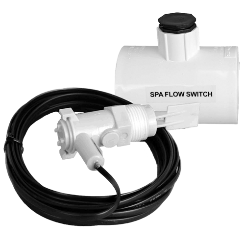 The Spa Flow Switch is for pool/spa combo's and is plumbed into the spa suction line. When spa only mode is activated, the Spa Flow Switch is engaged. When connected with a Pool Lab Plus, Puresilk or Hayward PS Series chlorinator only this will turn off chlorine production to prevent over-chlorination in the spa.